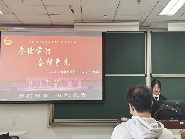 为深入学习贯彻习近平新时代中国特色社会主义思想,落实学校“时代新人铸魂工程”与“大思政课”工作要求,进一步强化对团员青年的政治引领,充分发挥共青团在学生思想政治工作中的主力军作用,3月27日,机械与储运工程学院第四届“百年征程杯”微团课大赛院赛圆满落下帷幕。