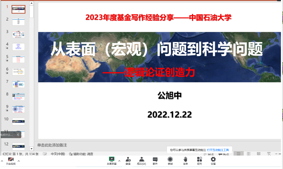 2022年12月22日,应机械与储运工程学院邀请,中国科学院过程工程研究所副研究员,中国科学院大学岗位教授公旭中博士到我校作了“从表面问题到科学问题,逻辑论证创造力”专题讲座。机械学院左丽丽副院长主持了本次讲座,学院80余名教师和学生参加。