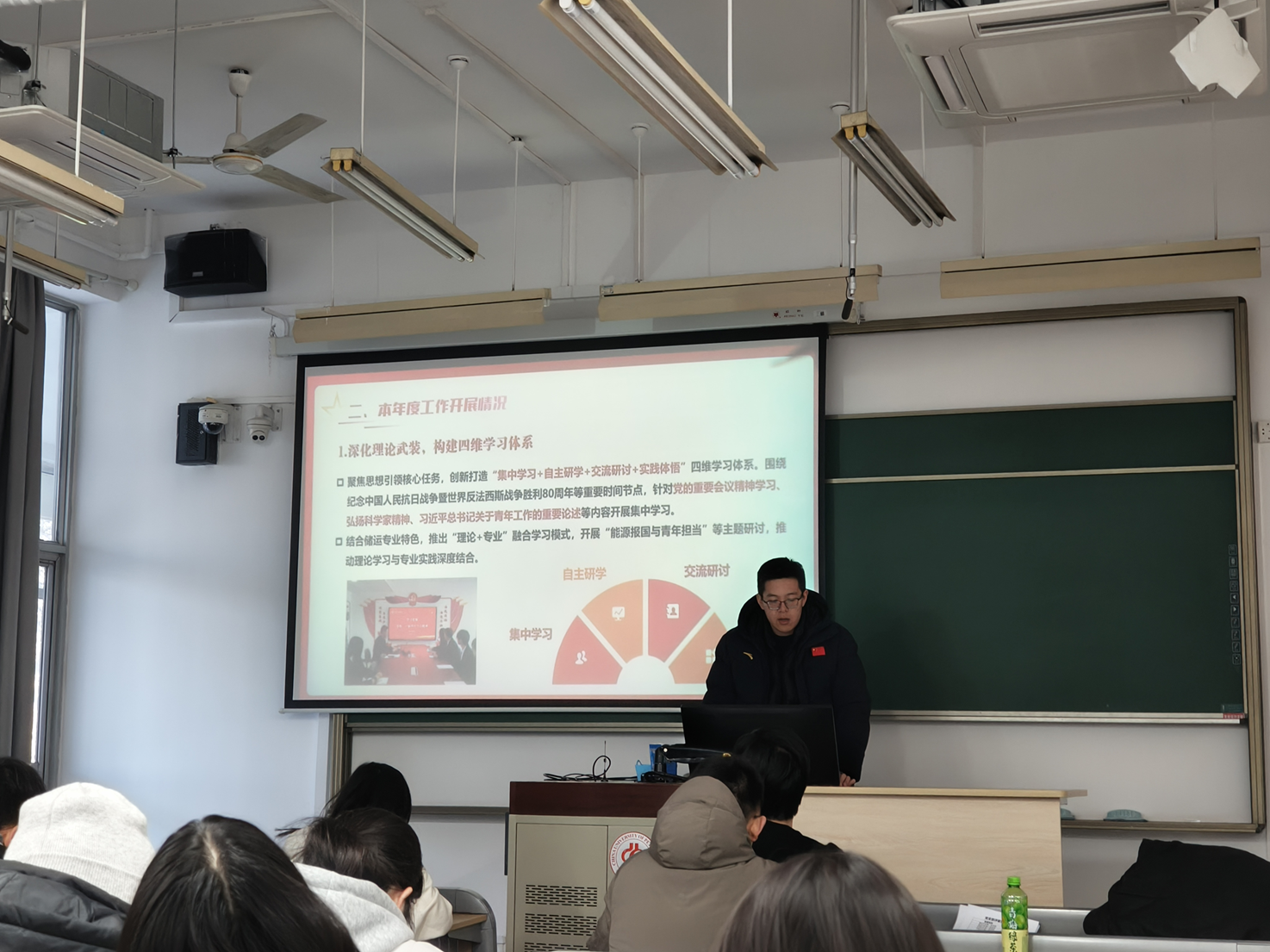 为深入贯彻落实《中国共产党普通高等学校基层组织工作条例》《中国共产党支部工作条例(试行)》,加强组织体系建设,全面提升党支部标准化规范化建设水平,充分发挥党支部战斗堡垒作用,机械与储运工程学院于1月21日开展2025年度学生党支部书记述职暨党支部评星定级会,学院党委组织员马珍珍、学生党务秘书李健、辅导员代表及全体学生党支部书记参会,李健主持会议。