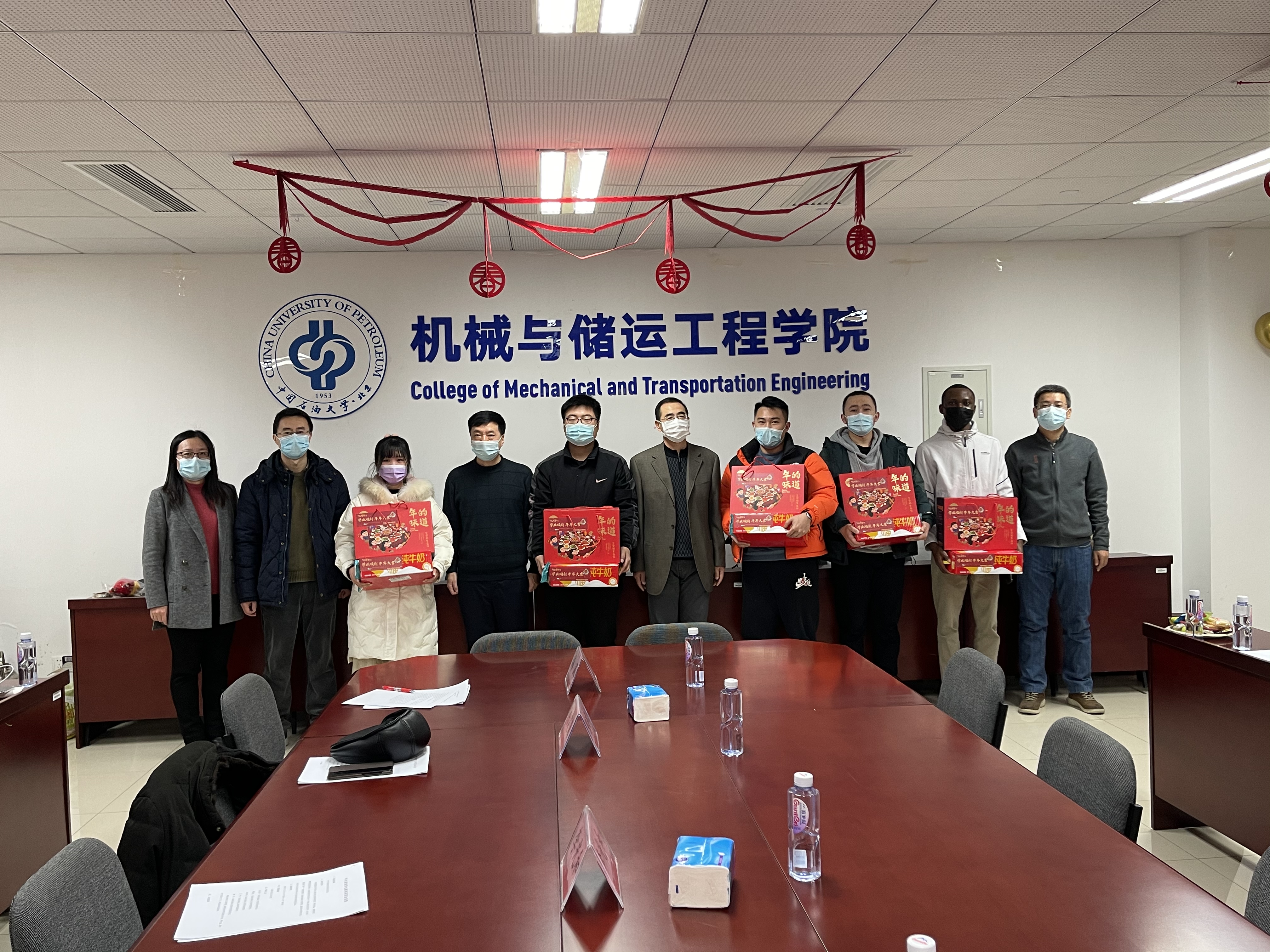 茶话会上,留校生代表分享了自己留校原因以及在校学习、生活情况,并介绍了家乡的春节习俗。机械制造及其自动化专业2017级本科生张彦博表示留校期间,从衣食住行各个方面都能感受到学院、学校的贴心、用心、暖心,并讲述了家乡石家庄过年时放鞭炮、贴春联、剪灯花、吃饺子、蒸年糕、炸油糕等传统活动。油气储运工程专业2017级本科生艾则麦提·艾合麦提分享了新疆维吾尔“迎春节”——努肉孜节诺鲁孜节日期间家乡人身着民族盛装、品尝诺肉孜饭、踏青赛马等的民俗。动力工程专业2017级硕士研究生张鸣远介绍了福建漳州春节期间贴“春”字、拜祖先等活动,表达了今年是自己第一次留校过年,在学习、生活等方面都感受到了来自学校和学院的关心和帮助。机械工程专业2018级博士研究生戎欣分享了家乡任丘大鼓会、糖墩儿节、鄚州庙会等的春节习俗,感谢学院学校对留校生们能够安全生活、安心科研的保障。动力工程及工程热物理专业博士留学生奥罗伦感谢学校多元的学术和实践氛围、优秀的师资队伍和细致严谨的管理,表示自己在疫情期间仍能够正常开展学术研究工作,提高了专业技能,并介绍了祖国尼日利亚的“春节”——新甘薯节的节日传统。