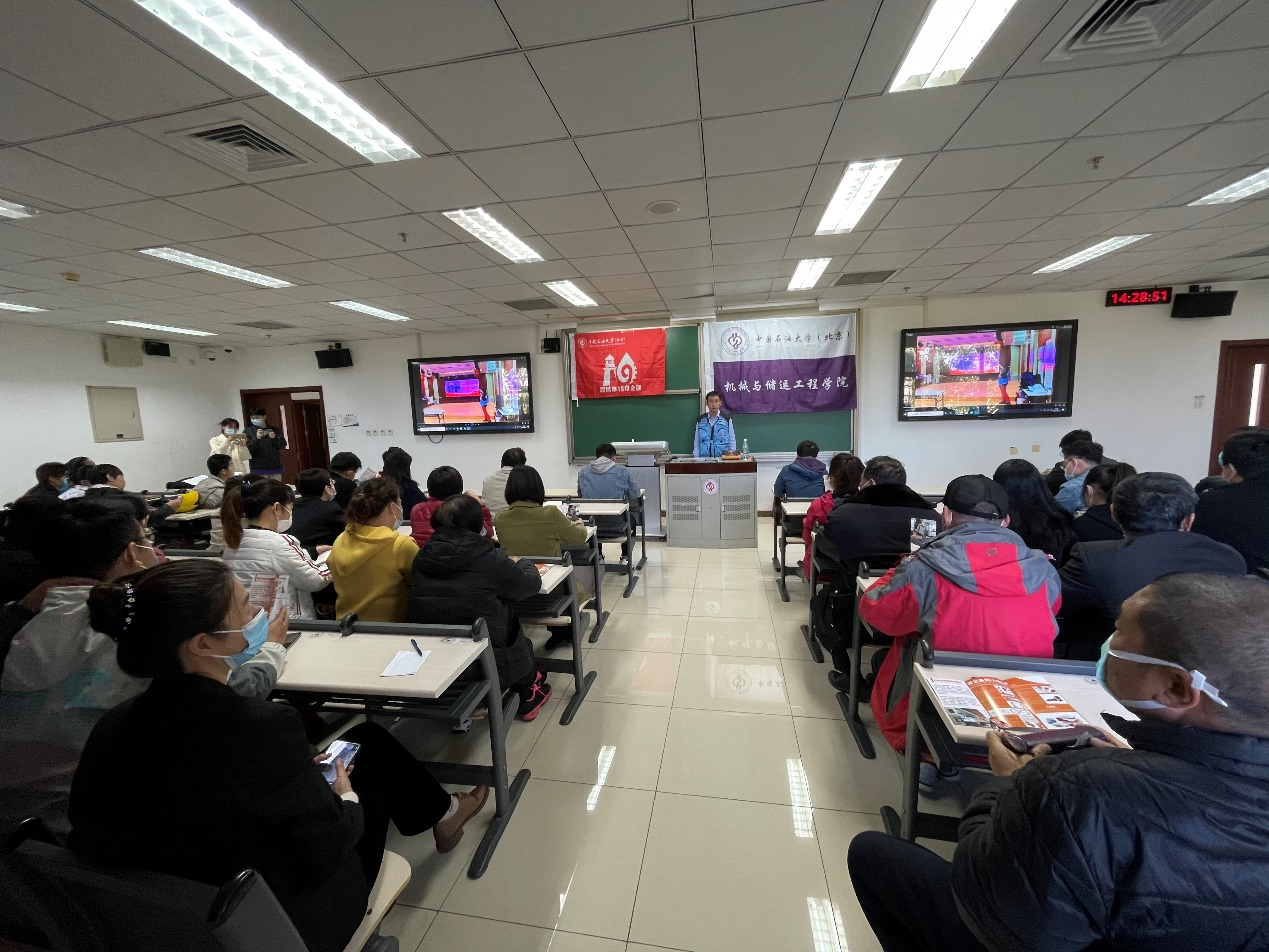 为庆祝中国共产党成立一百周年,深入贯彻习近平总书记关于应急管理和志愿服务工作系列重要指示精神,10月21日,中国石油大学(北京)机械与储运工程学院联合保卫处举办了“应急志愿服务进基层——走进中国石油大学(北京)”活动,邀请北京市应急管理局专业讲师队伍对学校各年级学生、安保人员、防火安全员、实验室安全员、消防志愿者、辅导员等300余人开展了四个场次的应急救护培训。