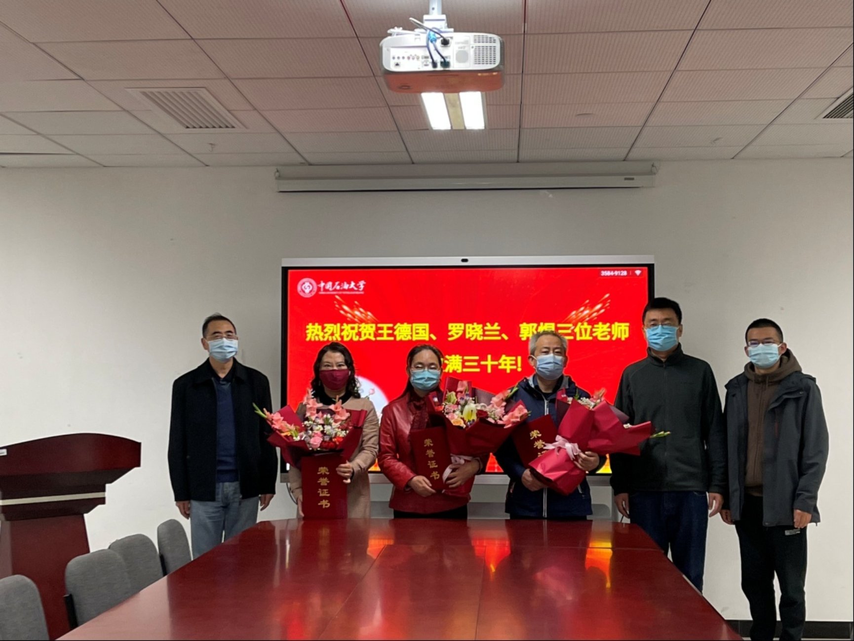 11月5日上午,机械与储运工程学院党委书记李光和、工会主席彭鹤以及工会委员张行,代表学院和工会,在主楼B921与从教满30年的王德国、罗晓兰和郭煜三位老师座谈交流。