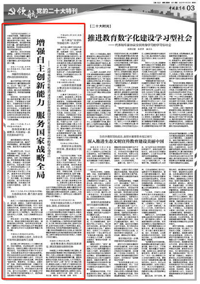 ——高校书记校长畅谈“坚持创新在我国现代化建设全局中的核心地位”发布时间:2022-10-24 | 来源:中国教育报 | 浏览量: