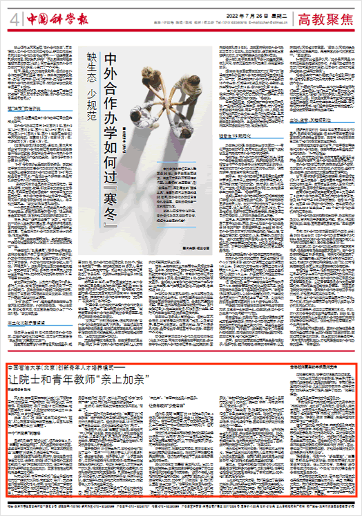 中国科学报:中国石油大学(北京)创新青年人才培养模式—— 让院士和青年教师“亲上加亲”