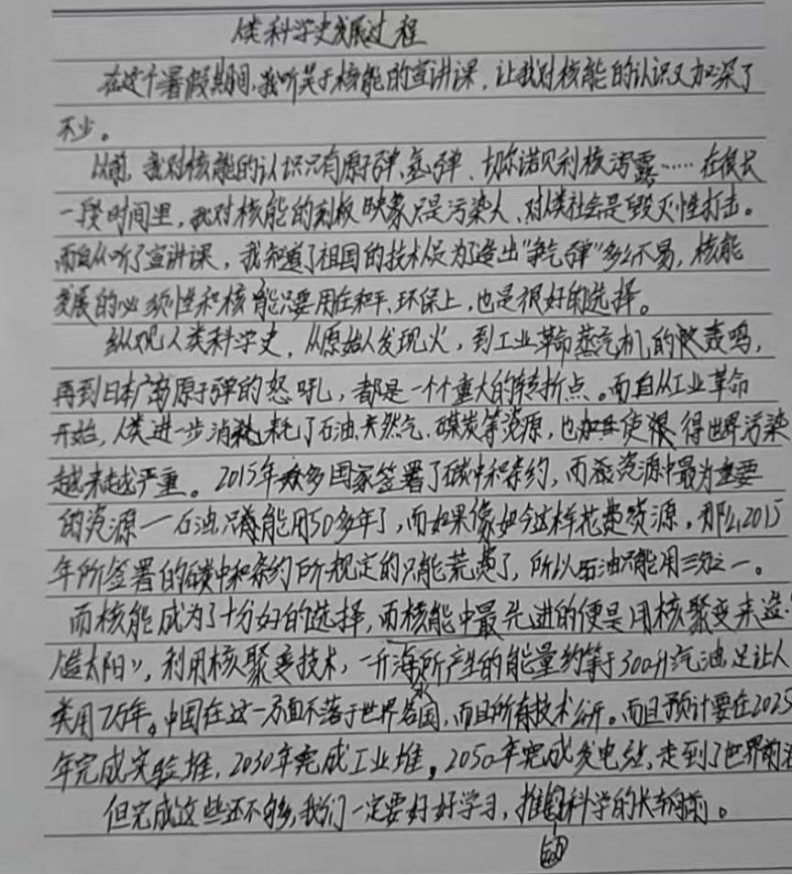 8月11日,宣讲团围绕第三届核安全峰会、核工业脊梁、人造太阳装置必要性,为南华县十余名小朋友们带来了三节别开生面的线上支教课程,宣讲团还收获了小朋友们的感谢信,宣讲团通过持续宣讲将“核知识”与“核精神”的种子播种在小朋友的心中。