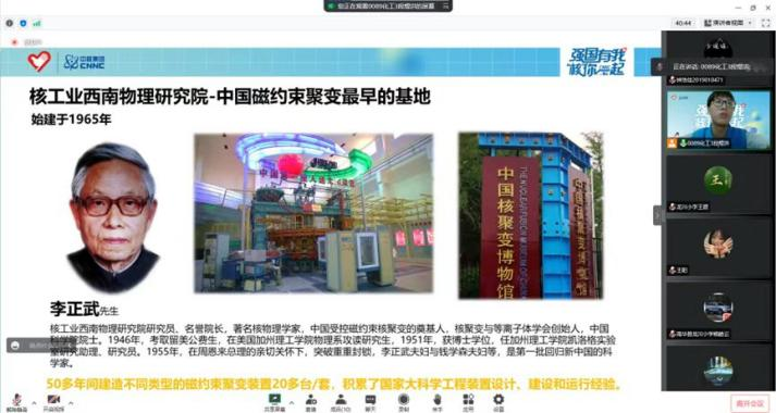 为切实达到能源宣讲效果,多维度宣传传播“核知识”及“核精神”,宣讲团于6月11日至8月21日,面向能源类学生开展线上宣讲共12场,覆盖听众481人次,所涉主题包括碳中和、核技术应用、核素科普、中国核工业史、“华龙一号”、“人造太阳”、中国核工业精神谱系等。