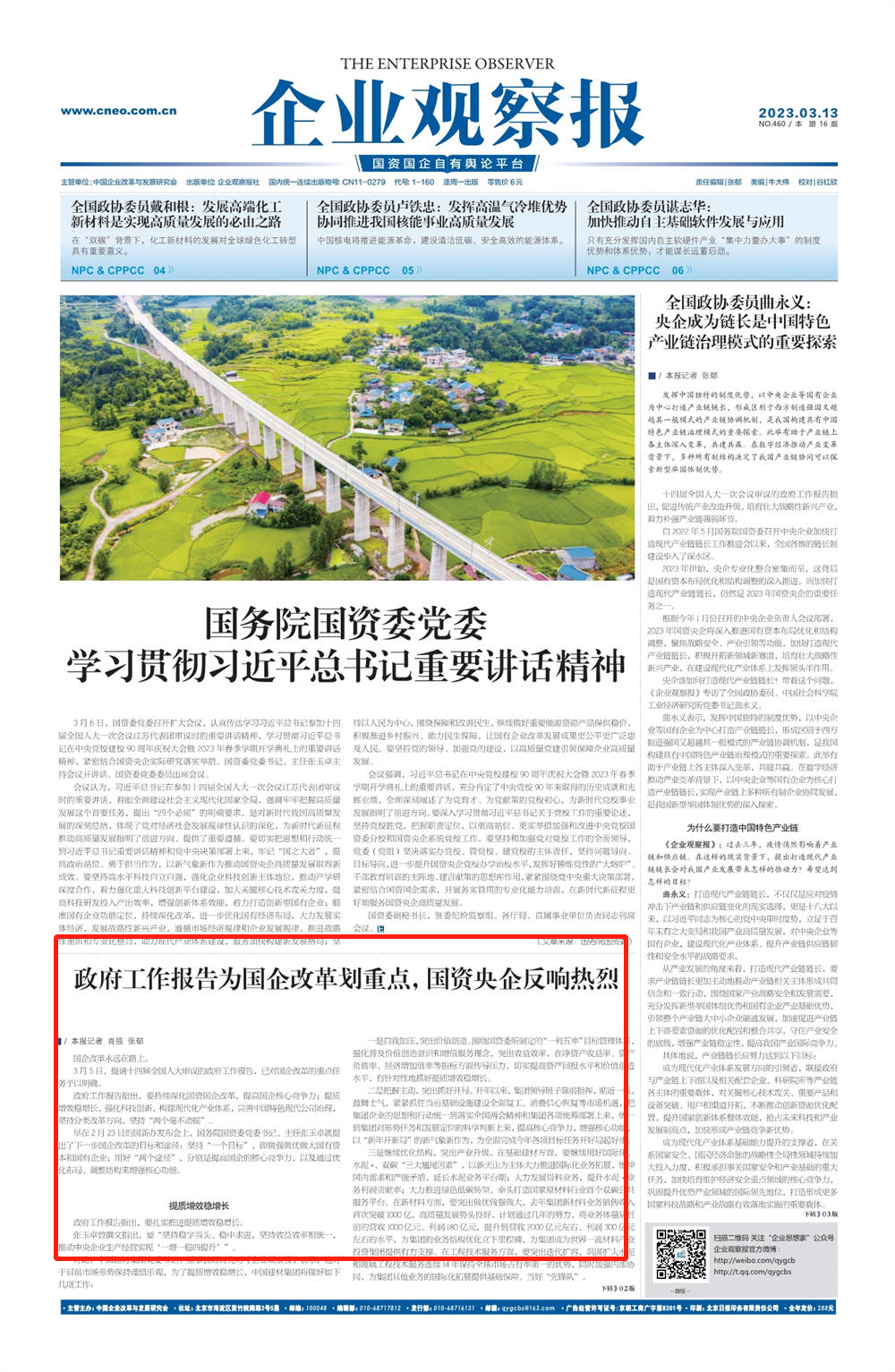企业观察报:政府工作报告为国企改革划重点,国资央企反响热烈