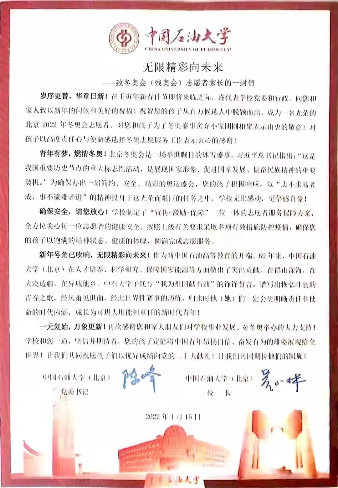 北京学联:出征冬奥!多所高校给家长写了封信......