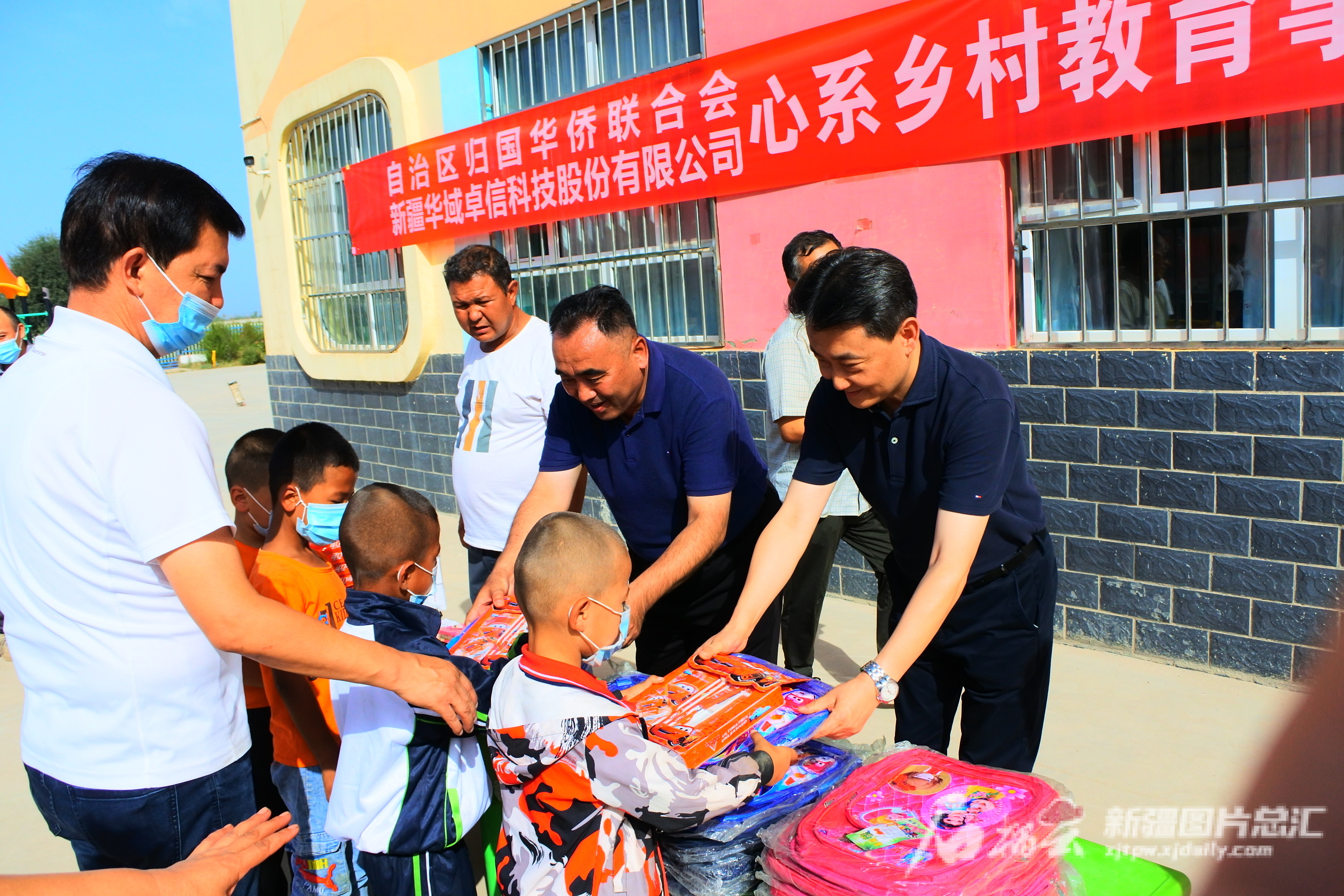 2021年9月8日,自治区侨联开展公益活动,自治区侨联向温宿县佳木镇加依村幼儿园和小学学生捐赠爱心书包、衣服等。自治区侨联供图