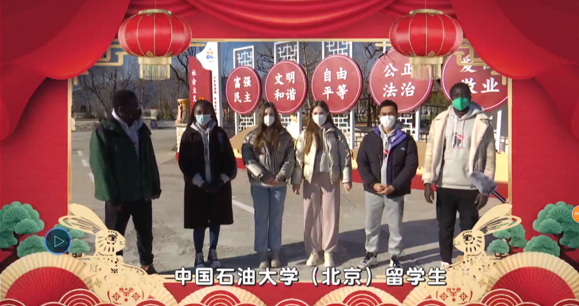 来自苏丹、巴基斯坦、土库曼斯坦、乍得的五名国际学生代表参与录制了共青团北京市委员会的《国际青年北京范儿——Happy New Year 兔 you》新春主题视频,在视频中,他们用流利的汉语向中外青年献上自己的新春祝福。该视频在由共青团北京市委员会主办、北京广播电视台承办的2023青春北京云上春晚播出。