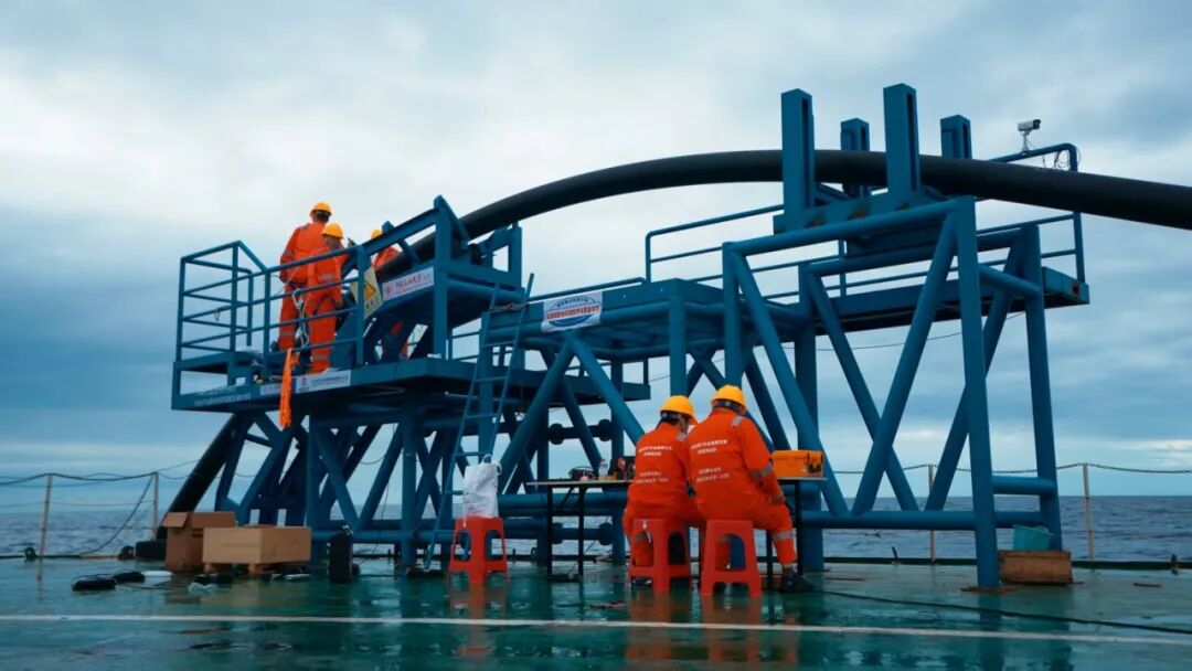 本次非金属柔性混输管的海试由长沙矿冶研究院有限责任公司作为海试牵头单位与总指挥单位,从10月9日开始码头安装调试,27日由广州码头启航至三亚海域,并于31日完成柔性管道海上安全布放回收与全部试验任务,试验区水深103m,非金属非粘结智能柔性管总长250m,首次验证了我国深海采矿全软管输送性能、管体水下空间构型与阻塞的实时健康监测能力,试验中矿浆最大输送体积浓度达15%,矿石粒径20mm,稳定输送流量为457m3/h,实现了设计水深6000m级深海采矿非金属智能柔性管从设计方法、关键超耐磨材料研发、加工工艺与核心制造装备,以及海试评价从“0”到“1”的技术突破,取得了从技术探索迈向海试验证的胜利,为我国6000m级深海多金属结核采矿输送系统的联动海试提供了核心关键技术与装备。