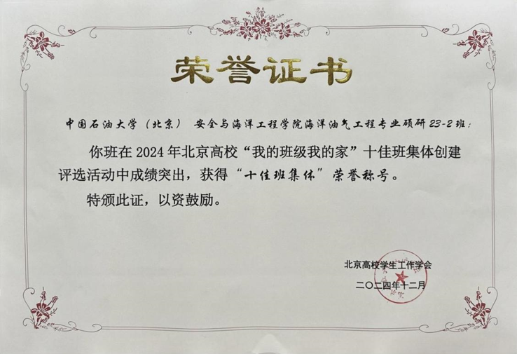 获2024年北京高校“我的班级我的家”十佳班集体荣誉称号