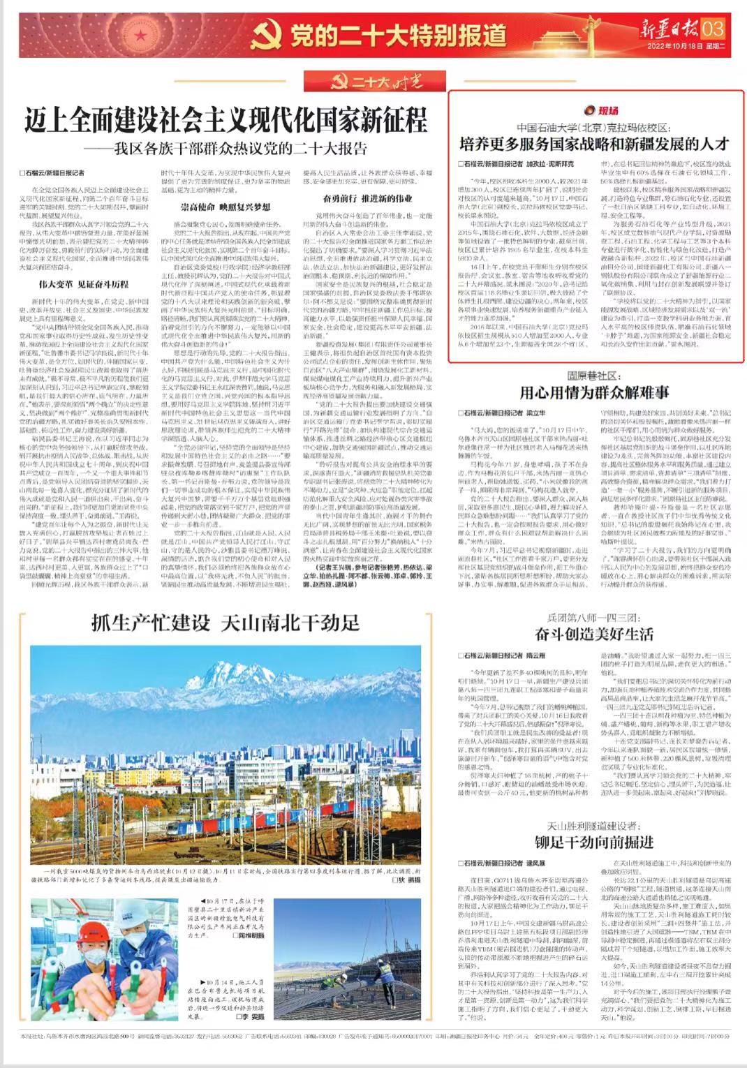 新疆日报:中国石油大学(北京)克拉玛依校区: 培养更多服务国家战略和新疆发展的人才
