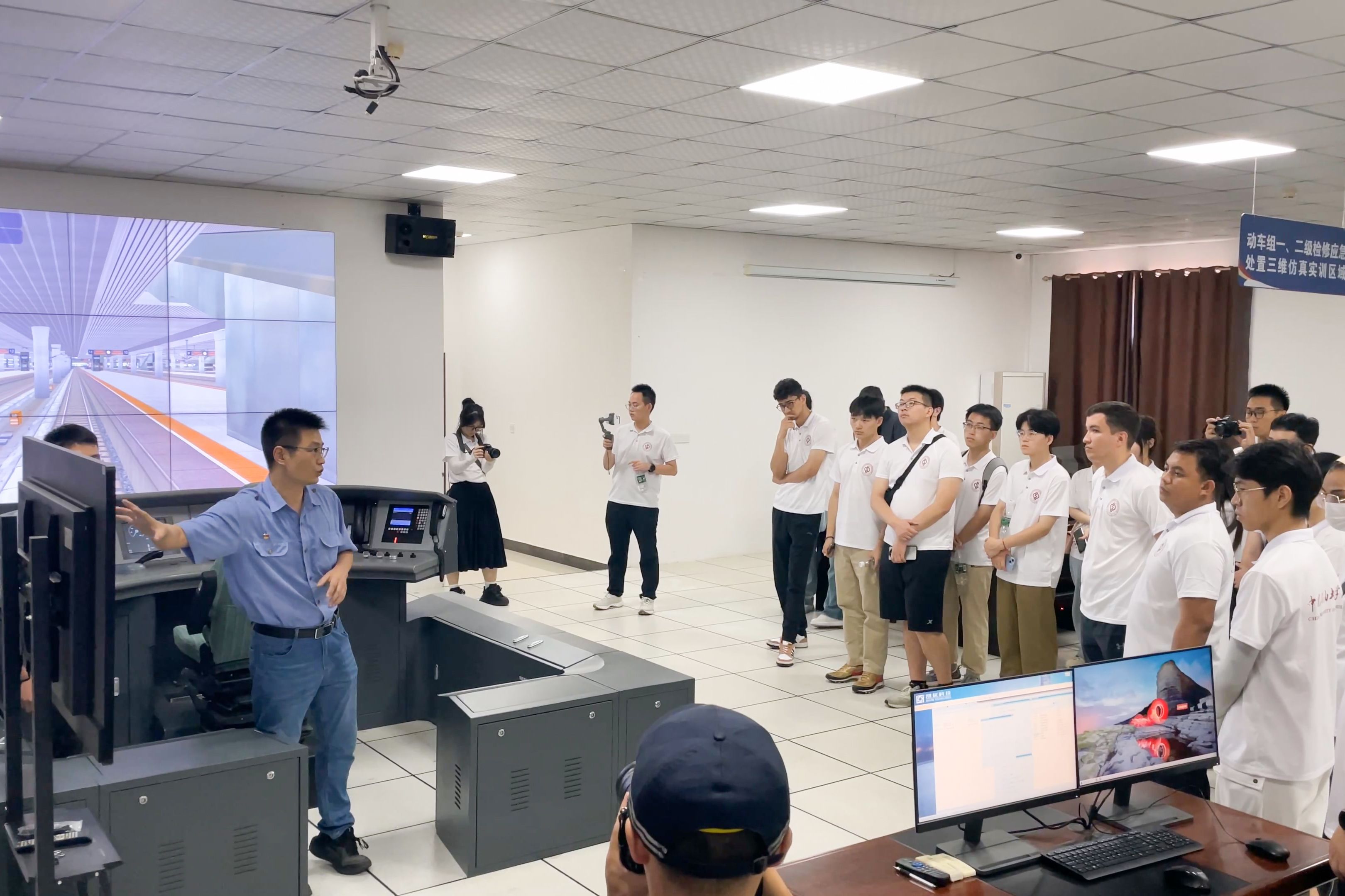 中国铁路南昌局集团有限公司调度所作为运行指挥的重要节点,承担着保障赣闽两省铁路列车安全运行的关键职责。在这里,师生们聆听了铁路工作人员专业的细致讲解,并通过座谈交流进一步了解铁路调度指挥系统在提升运输效率、保障运输安全等方面发挥的作用。在南昌西动车运用所,实践采访团参观了动车组进出库、外观检查、系统测试等工作流程,体验了高铁模拟驾驶,并与动车组“零距离”接触,深入了解中国高铁在技术创新、智能化检修运维等方面的最新进展。