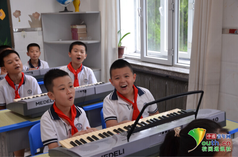图为第一节音乐课,同学们第一次通过电子琴,弹奏出歌曲《孤勇者》的旋律时,露出的笑容。中国青年网通讯员 何天 供图