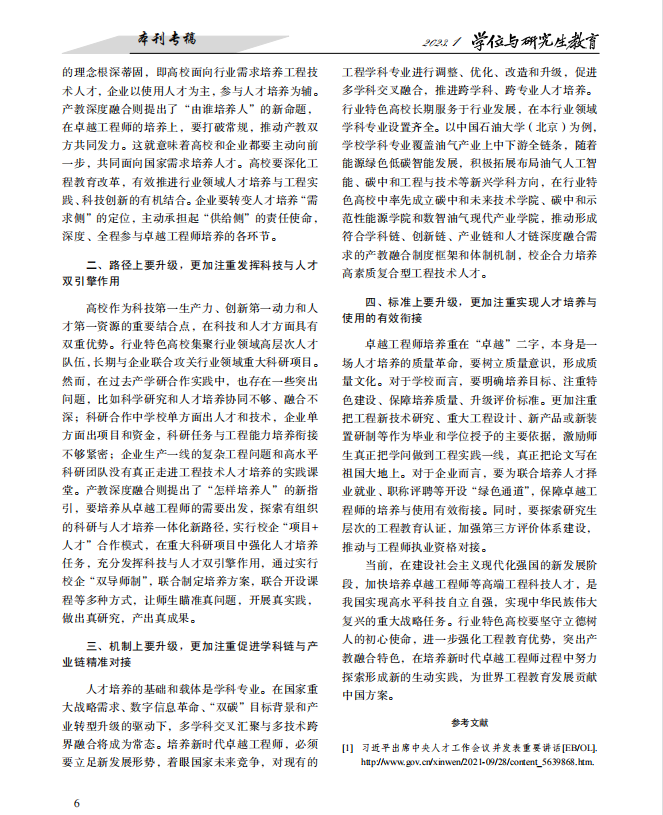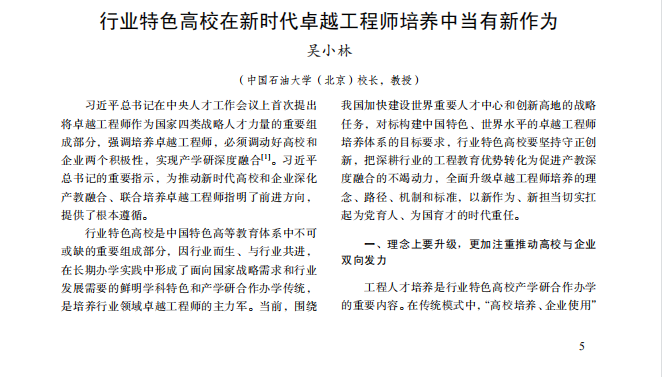 当前位置: 首页» 聚焦 《学位与研究生教育》:吴小林:行业特色高校在新时代卓越工程师培养中当有新作为 发布时间:2023-01-09 | 来源:《学位与研究生教育》 | 浏览量: (编辑 李昕阳) 分享到: 排行榜 荐读 中石大召开2024年全面从严治党工作部署会暨... 对口支援中国石油大学(北京)克拉玛依校区工作... 中石大获评 “昌平区学习型示范高校” 中国石油大学2022年十大新闻揭晓 新年贺词 | 雄关漫道 惟有登攀