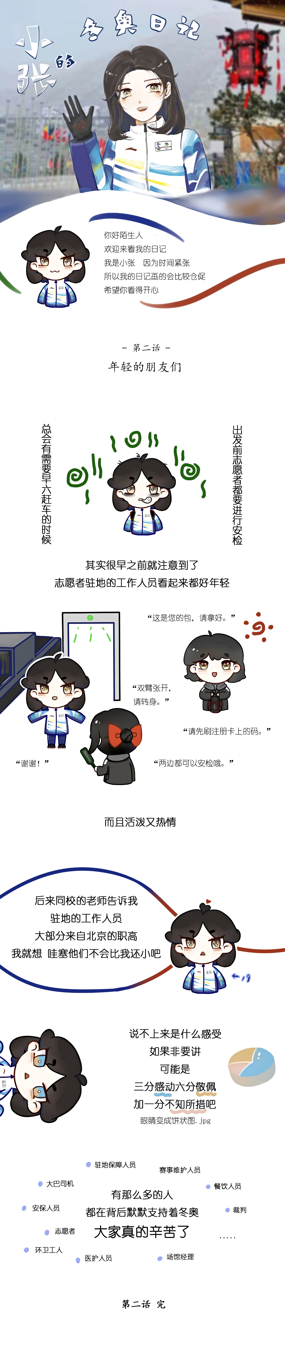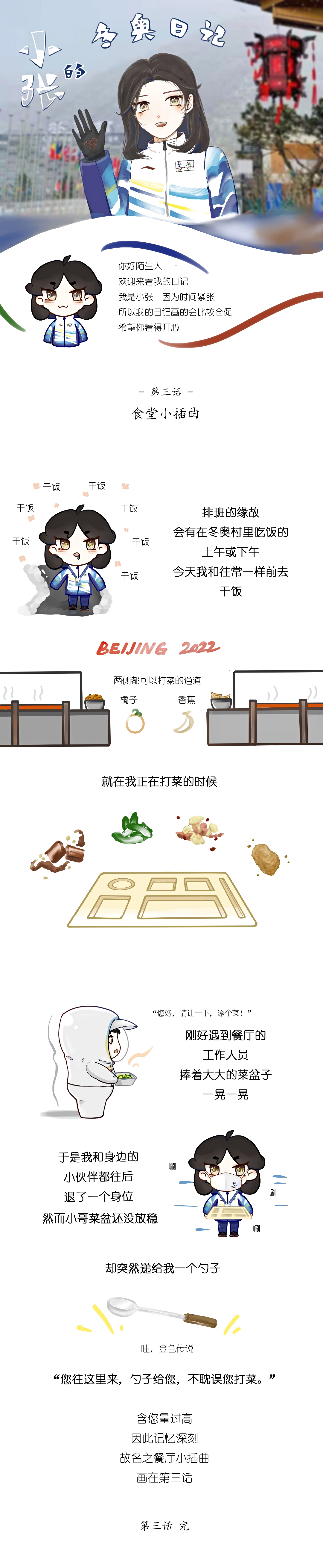 《小张的冬奥与冬残奥日记》说是漫画,其实更像是一篇手帐,记录着我从冬奥预开村到冬残奥志愿服务结束的所见所闻。