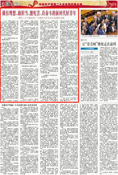 ——党的二十大报告在广大高校大学生中引发强烈反响发布时间:2022-10-24 | 来源:中国青年报 | 浏览量: