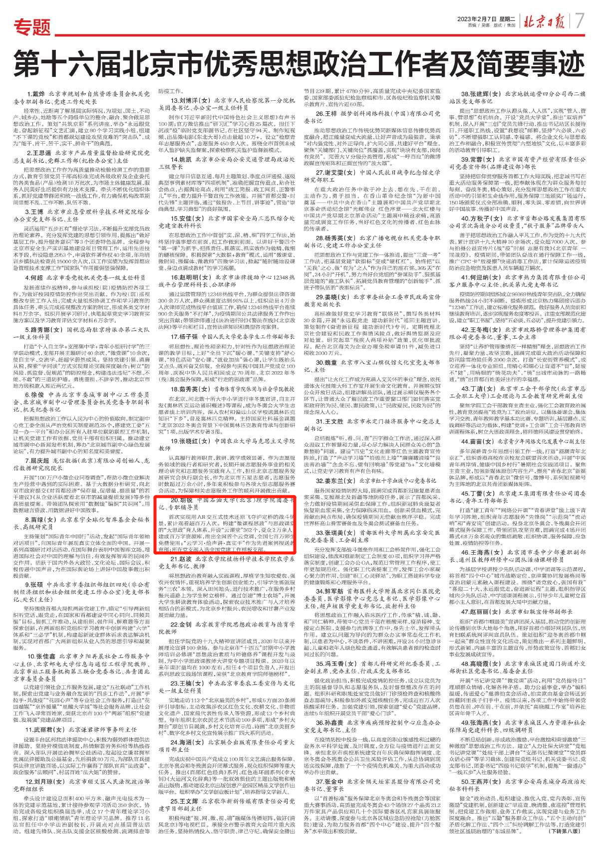 北京日报:第十六届北京市优秀思想政治工作者及简要事迹