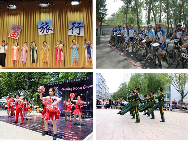 “新闻学术周”以“星光”为主题,数学建模宣讲会、科技创新起帆宣讲会、三校辩论赛、小语种角等丰富多彩的活动营造了浓郁的文化气息;“体育健身周”以“绽放”为主题,山地车交流赛、“剑”“坚”“健”击剑表演、Cheering Boom Boom专场演出等体育活动引领同学们走下网络,走出宿舍,走向操场;“文化艺术周”以“弦韵”为主题,陶笛专场音乐会、征文比赛、书法交流等活动让石大师生共享文化艺术盛宴;“公益实践周”以“爱仁”为主题,光盘行动、“把最美的情话给最美的妈妈”母亲节主题活动、北京高校国旗队联合汇演等活动,让爱充满石大,传播正能量。闭幕晚会上,中国政法大学、北京航空航天大学、中央戏剧学院、北京交通大学和北京舞蹈专修学院的优秀社团代表与石大优秀社团一起,同聚青春舞台,共展青春风采,交流活动经验,分享青春成长。