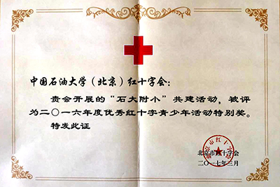 石大红十字会开展的“石大附小”共建活动获北京市红十字会表彰