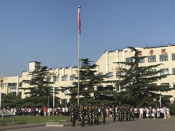 6月19日,中国石油大学2017届毕业生在学校北门广场参加了离开母校前最后一次升旗仪式,2000余名毕业生参加了仪式。
