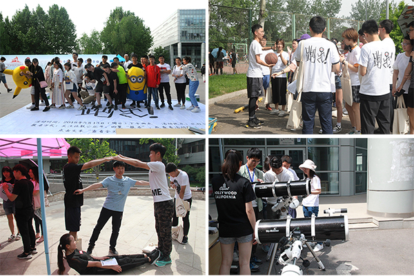活动过程中,学生社团在校园内设置不同的游戏点,红十字会通过知识问答让学生了解红十字会运动的历史,墨苑书法社通过游戏互动让学生欣赏优秀的书法作品,星罗天文社让学生熟悉天文望远镜的操作,航模社让学生了解航模的构造和飞行原理。