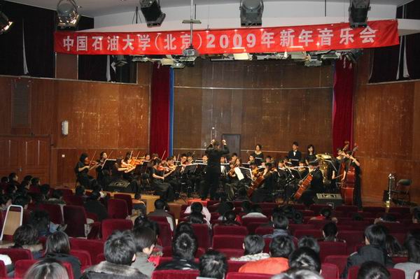 12月30日下午,“中国石油大学2009年新年音乐会”在科学会堂举行。北京联合大学校长柳贡慧,以及我校校长张来斌,党委副书记吴小林、雷玉江等莅临了音乐会,张来斌校长致新年贺词。