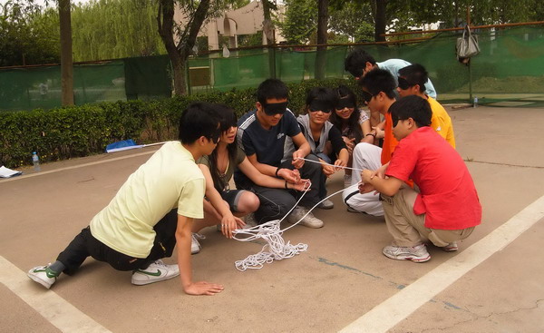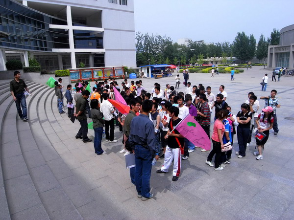 5月10下午,由我校石油天然气工程学院社会实践中心主办,海天教育提供赞助,老船长素质扩展中心协办的昌平高校素质拓展活动在第三教学楼、南门小广场、第二教学楼依次进行。来自老船长素质拓展中心的20多个拓展师引导包括中国石油大学、中国政法大学、北京化工大学、华北电力大学、北京农学院、中华女子大学、吉利大学和北京科技经营管理学院在内的八所昌平高校的240多名同学开展了此次活动。
