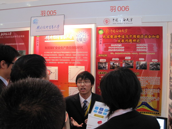 针对第十一届“挑战杯”全国大学生课外学术科技作品竞赛和第五届 “挑战杯”首都大学生课外学术科技作品竞赛,学校从2008年9月正式启动竞赛的组织工作,经过精心组织、层层动员,先后有48项作品参加了学校评审。在学院和学校两级评审的基础上,共有12件作品报送北京市参加第五届“挑战杯”首都大学生课外学术科技作品竞赛。最终11件作品获奖,其中特等奖1项,二等奖3项,三等奖7项。并且特等奖作品《化石能源峰值与中国经济社会和谐发展问题研究》入选第十一届“挑战杯”全国大学生课外学术科技作品竞赛。