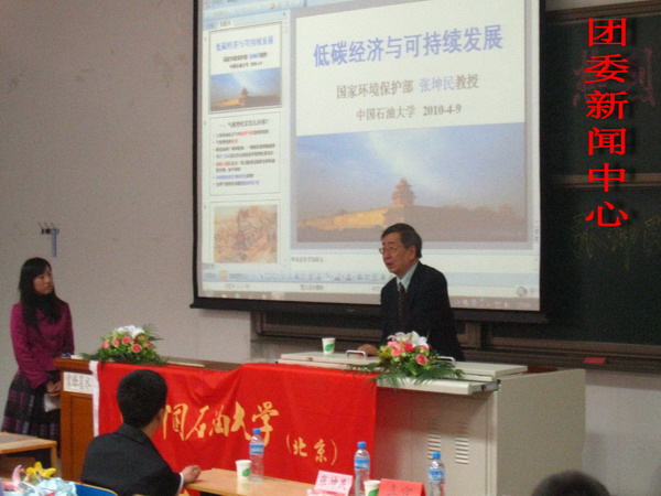4月9日下午,现任中国可持续发展研究会副理事长兼低碳经济研究学组主任、国际环境与发展学院中国委员会理事张坤民教授做客我校双百讲坛,在新教NO.2教室作了题为“低碳经济与可持续发展”的报告。