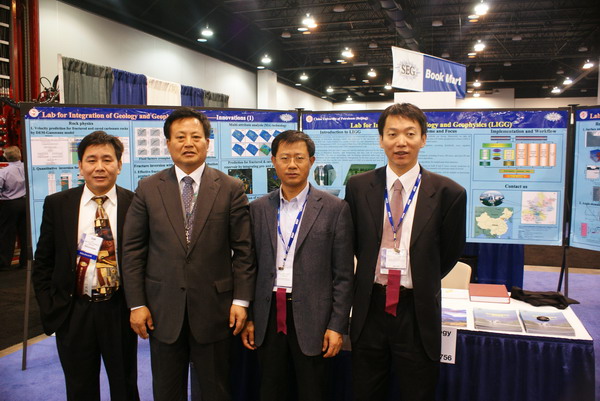 本次会议共录用论文800多篇,其中我校共有11篇录用,论文录用篇数和参加会议人数均居国内高校之首。孙赞东教授、刘洋教授、马继涛博士等在会议上做了口头报告,博士生袁三一、刘兰峰、孙文博、王海洋、刘国昌等在会议上分别做了口头报告或张贴报告。与会期间,石大地质与地球物理综合研究中心开设了专门展台,并同与会的国内外专家学者进行广泛交流。石大师生还参加了SEG主席、Schlumberger、ExxonMobil、中国石油集团东方地球物理公司、麻省理工学院、德州大学奥斯汀分校、英国EAP项目组等举行的招待会。