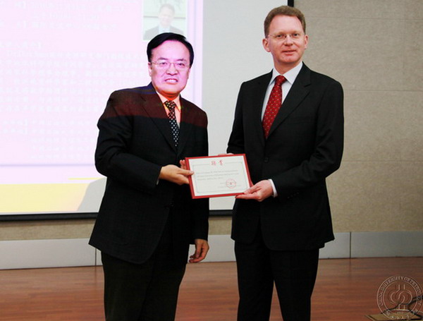 11月16日上午,壳牌石油公司副总裁Dirk Smit博士做客中国石油大学阳光讲坛,在国际交流中心三楼会议室为全校师生作了一次精彩的演讲,并受聘为石大兼职教授。