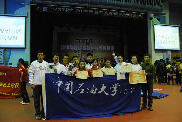 中国石油大学乒乓球运动员不畏强敌,经过顽强拼搏,分别取得了男团乙A组亚军、女团乙C组第三的优异成绩。在单项比赛中,刘钊、张毅同学在男单比赛中以出色发挥,成功守住下半区,会师半决赛,并最终获得了男单冠军和第四名的好成绩。此外,张海舟、向雪丹取得女双第四名;刘钊、武越中获男双第七;向雪丹获女单第七。同时,学校代表队凭借赛场内外的良好作风获得了体育道德风尚奖。