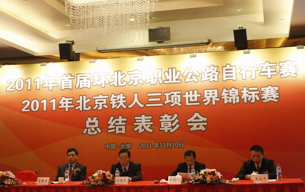11月10日,2011年首届环北京职业公路自行车赛、2011年北京铁人三项世界锦标赛总结表彰会在北京新云南皇冠假日酒店举行。北京市副市长刘敬民出席会议并讲话,参与两项赛事筹办的相关单位代表近百人参加了会议。此次会议由北京市体育局局长李颖川主持。