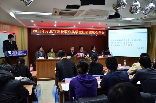 1月4日,2011年度北京高校职业类学生社团年会在北京高校毕业生就业指导中心召开。共青团北京市委员会、北京市高校就业指导中心、北京市高校就业促进会的相关负责人出席了会议。