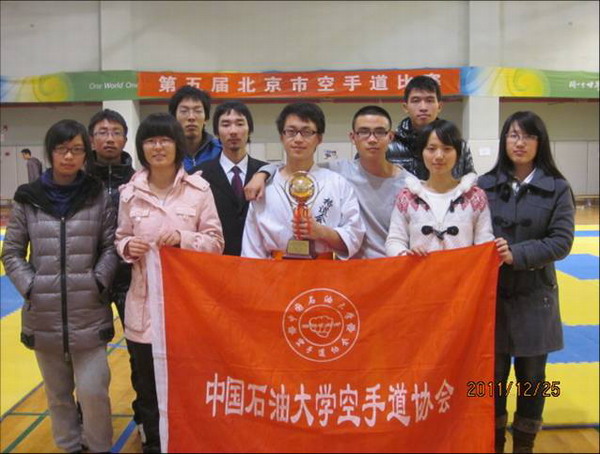 近期,由北京市大学生体育协会和北京空手道会联合举办的“第五届北京市空手道比赛”在北京大学邱德拔体育馆举行,来自北京十七所高校的运动员参加了本次比赛。中国石油大学空手道协会派出3名同学参赛,经过层层对垒,最终郭霄鹏同学以顽强的拼搏精神取得了男子轻量级冠军。