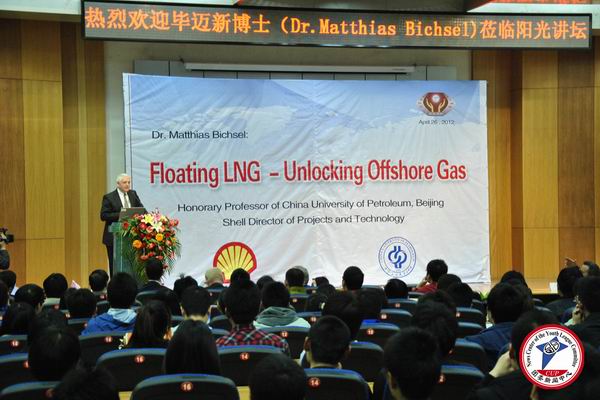 报告会上,Matthias Bichsel以“Floating LNG─Unlocking Key to Offshore Natural Gas”为题,通过详实的数据说明了中国市场对能源的需求量,阐释了天然气作为一种环保的清洁能源的重要性及美好发展前景,分析了国内外对合作开发天然气新技术的迫切需求。他对浮式液化天然气(FLNG)生产装置和传统的液化天然气(LNG)生产装置的工作原理分别作了简要阐述,并通过对两种生产装置的详细对比说明了FLNG在成本、储量、生产周期等各方面的优势。随后,他对壳牌公司在澳大利亚西海岸的Prelude FLNG生产装置的工作机理、对台风等海洋运动的抵御能力和预计年产量等相关内容做了简要介绍,并展望了这项新技术的革命性意义以及该领域对相关技术人才的迫切需求。