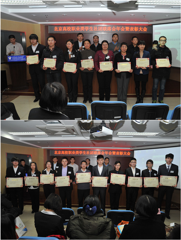会议表彰了2012年度北京高校职业类优秀社团、先进指导教师及先进学生干部。中国石油大学职业发展协会荣获“2012年度北京高校职业类优秀社团”称号,就业指导中心教师范晓静被评为先进指导教师,石大职业发展协会秘书长曲文星被评为先进学生干部。
