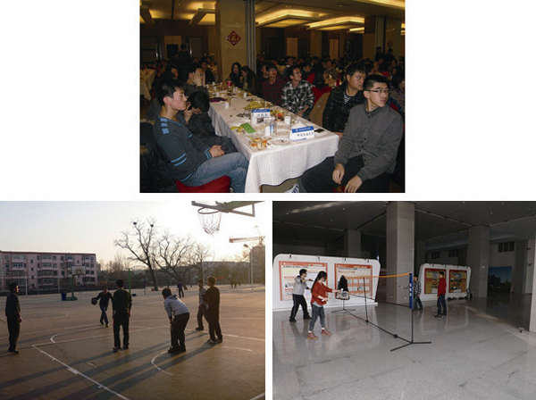 2月3日下午,临时团总支组织部分留校学生到北京航空航天大学参加了由团中央、全国学联、团市委举办的“温暖之都•情溢校园”2013年首都高校寒假留京学生新春联欢会,来自16所首都高校的400余名大学生代表欢聚一堂,喜迎新春;2月18-20日,临时团总支组织留校学生进行了篮球活动和羽毛球活动,丰富了寒假期间留校学生的文体生活;除夕夜,留校学生在润杰公寓综合楼十层多功能厅集中收看中央电视台春节联欢晚会的现场直播。