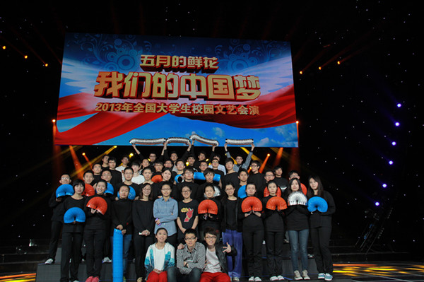 青春时尚,创意梦想。54日晚,由中宣部、教育部、共青团中央主办,中央电视台承办的“五月的鲜花——我们的中国梦”——2013年全国大学生校园文艺会演,在央视一号演播大厅上演。来自全国50多所高校的近1500余名学生参加演出。中国石油大学48名学生表演的创意舞蹈《输油管道变奏曲》被安排在第23个节目出场。中央电视台一套在黄金时间现场直播了整场演出。