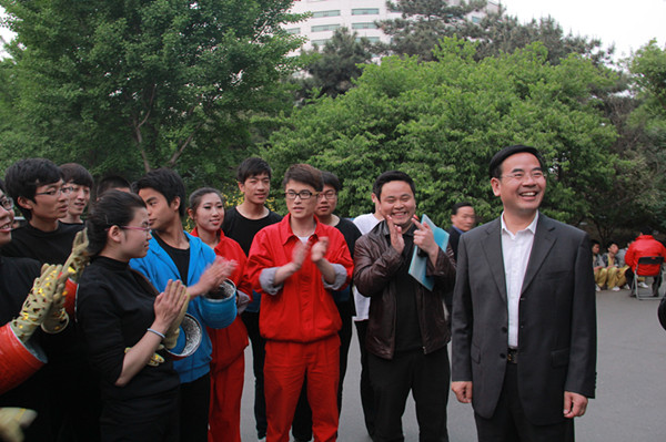 校党委书记蒋庆哲应主办方邀请观看了演出。晚会总导演魏党生与蒋庆哲进行了亲切交流,高度评价了石大连续三年参演“五月的鲜花”晚会,充分肯定了石大学子的精神面貌。蒋庆哲在现场直播前来到晚会后台看望了石大参演团队,向同学们致以节日的问候。他表示,于石大校庆之年在中央电视台参加会演非常有意义,希望参演队员发扬中国石油大学的优良传统,以昂扬的斗志、饱满的热情和优异的表现圆满完成会演任务,为学校争光,为石大60周年校庆献礼。