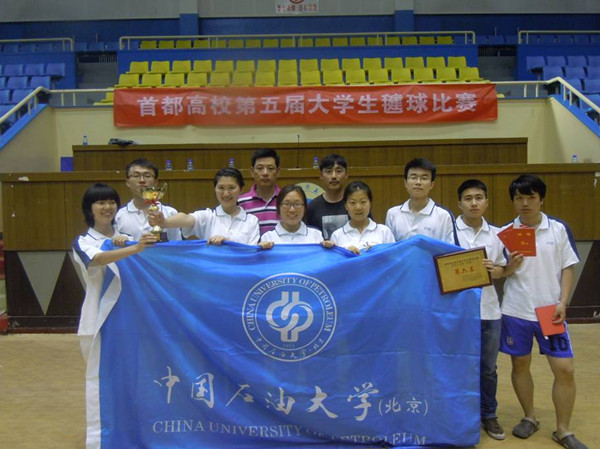 5月12日,首都高校第五届大学生毽球比赛在北京石油化工学院举行。中国石油大学毽球队派出了男、女各一队参加三人组的比赛。在强手林立的比赛中,石大健儿不畏强敌,敢打敢拼,经过不懈努力,取得了男子甲组第六名和女子乙组第三名的好成绩。此次是中国石油大学首次派出女队参加比赛。