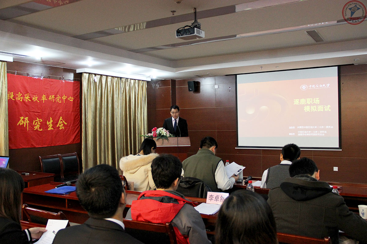 12月9日,由中国石油大学团委主办,中国石油大学研究生会和石大提高采收率研究院研究生会承办的“逐鹿职场-为就业加油”模拟面试活动在中油大厦311举行。本次职场模拟活动为石大研究生提供了一个展示自我,挑战自我的平台,为研究生实现就业梦想加油助力。
