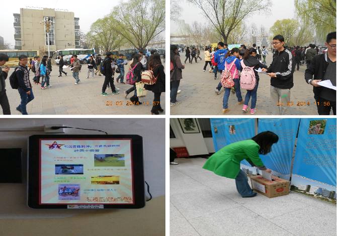 325日,开展了“学雷锋共建校园精神文明”宣传活动。活动现场发放学雷锋精神文明宣传单400余份,同时在各个安装电子屏幕的宿舍楼内进行了电子展板滚动宣传。