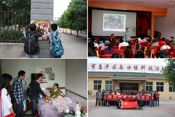 活动前,支部成员还与昌平区地震局联系给村民们带去了防震知识海报及家庭应急救助手册。活动中,同学们通过PPT展示向村民讲解防震小知识,并与村民积极互动,“防震知识抢答”环节更是充分调动了村民参与活动的积极性。活动后,同学们还看望了村里的一些年迈老人,给他们带过去牛奶、食用油等慰问品,陪他们聊天,并给老人们收拾院子,做一些力所能及的事。