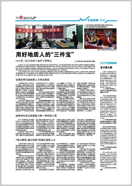 近日,第二届全国油气地质大赛在中国石油大学(北京)举行。大赛本着“深化研究生教育教学综合改革,推动人才培养联盟建设”的理念,旨在为全国的石油学子打造一套“学习、竞赛、研究”三位一体的高素质地球科学人才培养平台,让参赛学子在比赛中夯实专业基础,丰富知识储备,提高专业素养,增强专业技能,成长为适应社会发展需要的高端油气地质专业人才。人民网、中国日报网(英文网、中文网)、《科技日报》、《中国石油报》、《石油商报》、中青在线、北青网、中国石化新闻网、搜狐等媒体对大赛赛况进行了报道。