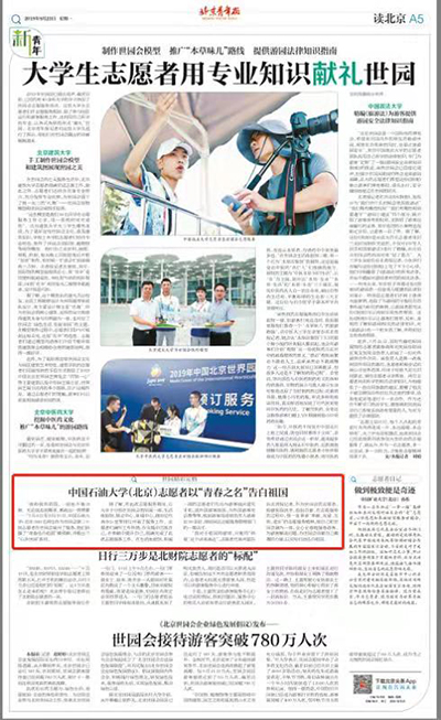 北京青年报报道石大世园会志愿者以“青春之名”告白祖国