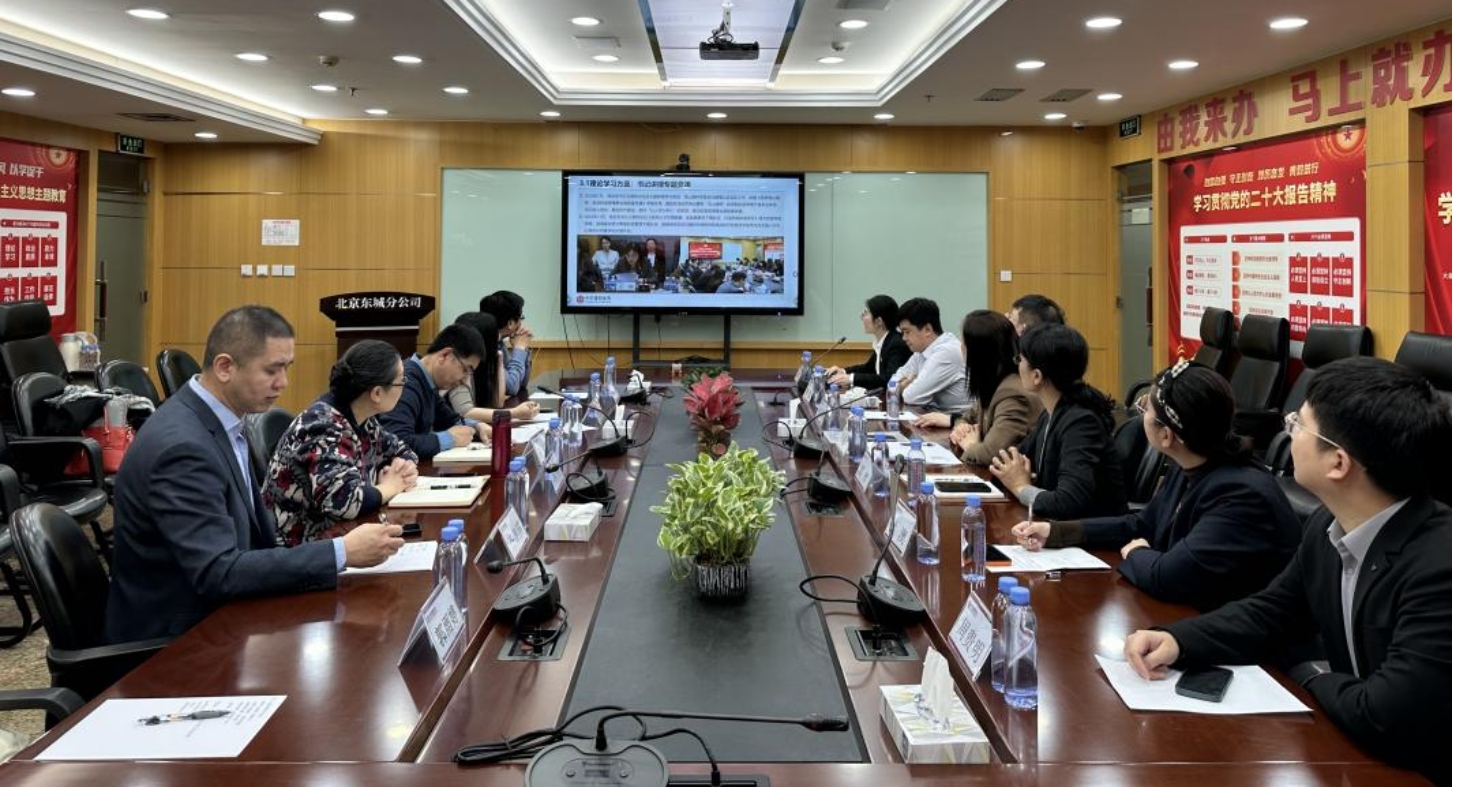 双方在基层党建、人才培养、项目合作、案例开发以及实习实训等方面开展深入交流。东城分公司党务专员温旭芳、东城分公司财富部门卓越团队长樊磊分别就北京东城分公司党总支党建工作和基本情况作介绍交流。经济管理学院金融系主任孙竹介绍了金融学科的能源金融特色、科创金融研究方向及产学研合作的最新进展。应用经济与金融系党支部书记李丽红介绍了支部党建活动开展情况以及案例开发等工作。