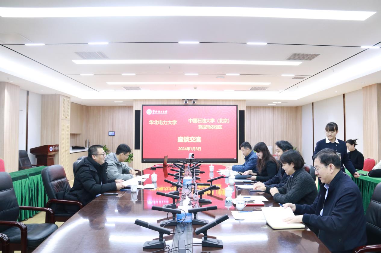 1月2日至3日,中石大克拉玛依校区校长李军带队赴中国地质大学(北京)、北京语言大学和华北电力大学等对口援建高校走访交流。中国地质大学(北京)党委常委、副校长武雄,北京语言大学校长助理郁有学,华北电力大学党委常委、副校长房方等领导接待了李军一行。双方相关职能部门、学院负责人和教师代表参加活动。